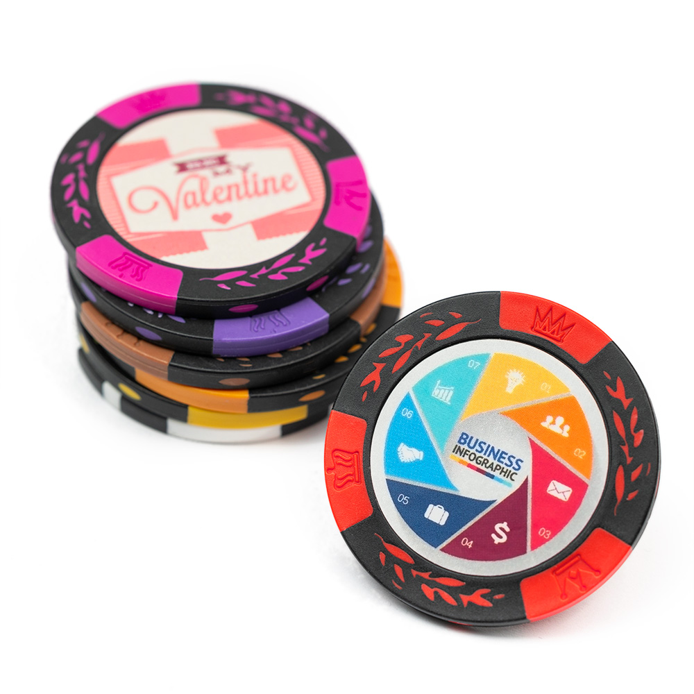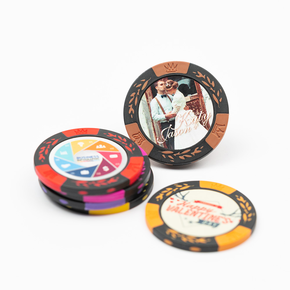 By personalizing your two tone white chip with your favorite photos or designs, all bets are off! You'll definitely have the most unique chips on poker night!