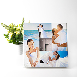 Clocks needn't be just for telling the time but can be used to double up as photo frames too. At Printer's Studio, you can personalize your own clocks with your own photos, images and messages. The frame of the clock consists of a collage design so you can add more than 1 photo. Choose from a range of clock face designs and colors and either numbers, Roman numerals or other designs available. Clocks are an important part of our everyday lives and are needed in rooms in your household and in your office, so why not make it personalized with smiling faces of people you love. Sturdy construction made with hard-wearing materials and printed in full-color with a glossy finish. Quartz movement for accurate time reading. Wall mountable or can sit on a flat surface using the portable table stand built-in on the back of the clock.