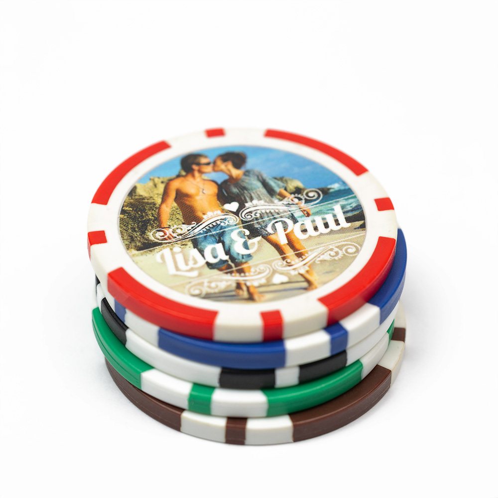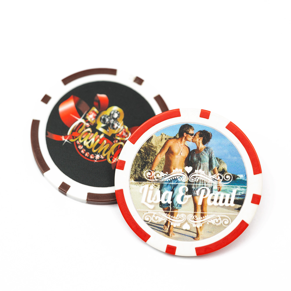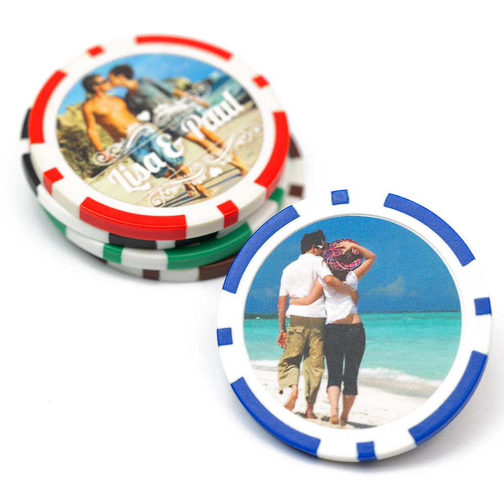 Raise the stakes with your own personalized blue chip. Have your chosen photo or design beautifully printed on to the clay composite poker chip to make your game of poker that extra fun for you and your family.